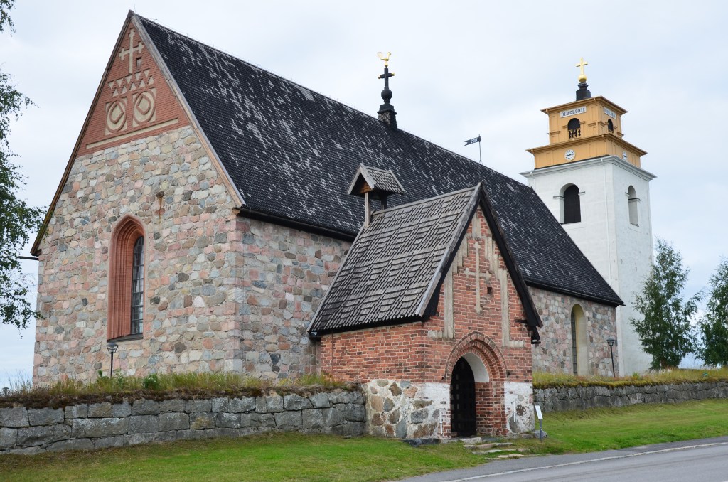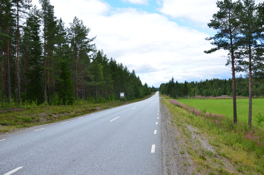 Puis nous reprenons, à contre cœur, l’inévitable route E4, une voie rapide, le plus souvent à file unique, mais trop monotone et sans intérêt. Nous décidons de la quitter à Skelleftea, pour prendre une route plus campagnarde et pittoresque, que le GPS qualifie de « route sans revêtement ». Oui monsieur GPS, mais ça c’était avant, le revêtement est maintenant tout neuf. La route 364 nous fait traverser de beaux petits villages et autres hameaux avec quelques curiosités au détour d’un virage.