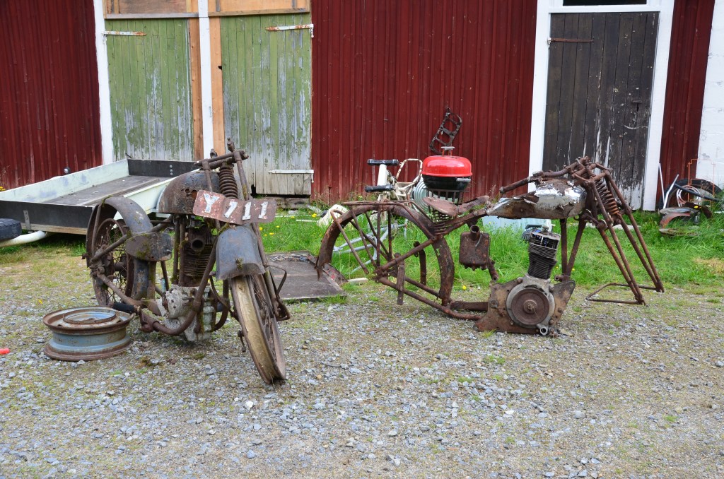 Telles ces deux voitures anciennes et épaves de motos, qui semblent être ici que pour attirer la curiosité d’un quidam arrêté par hasard a cet endroit.