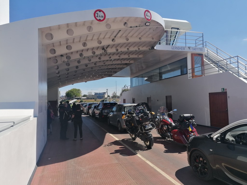 Nous traversons Wiesbaden, pour longer le Rhin. Puis nous le franchissons à Gernsheim, cela sera notre dernier ferry pour ce voyage. Nous contournons Heidelberg et Karlsruhe.