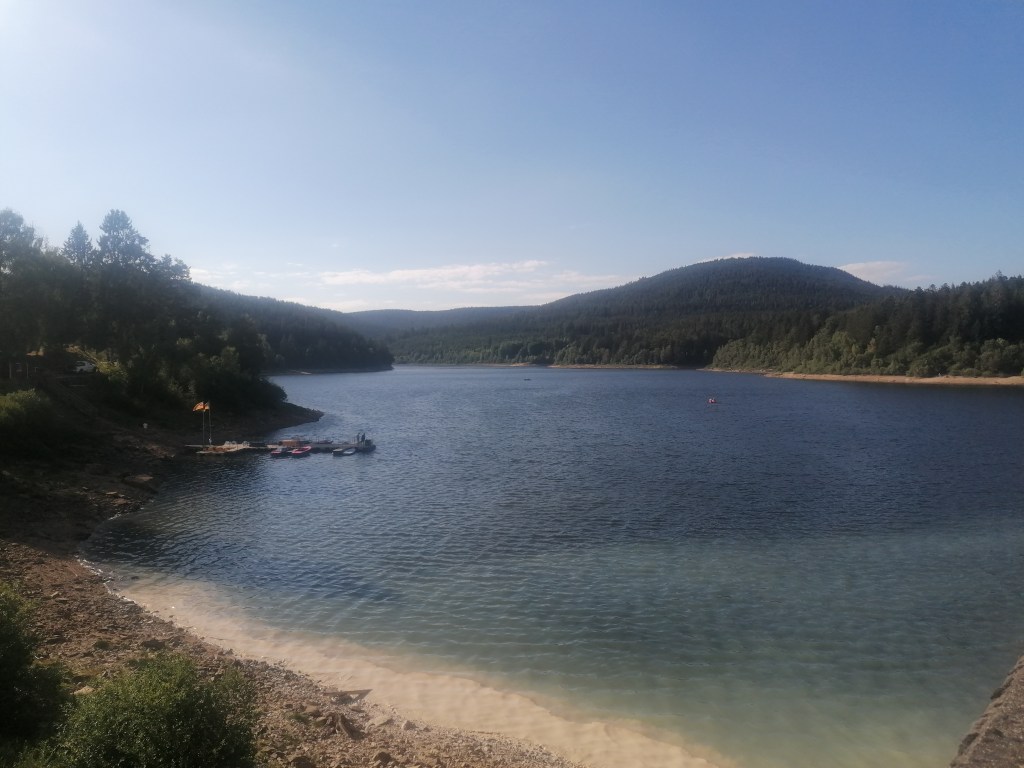 A Baden-Baden, je choisis de prendre la fameuse route B500, en direction de Freudenstadt. C’est la Schwarzwaldhochstrasse, ou aussi plus simplement, la route des crêtes. Je ne me suis pas trompé, à peine engagé sur cette route, je croise, et je me fais dépasser, par quantité de motards en moto sportives et combinaison de cuir qui vont plutôt vite. Je m’arrête quand même pour contempler le lac Schwarzenbach et son barrage, puis encore une halte plus loin, pour acheter quelques souvenirs, dans un lieu encombré par les touristes. Et encore un vrai régal sur quelques kilomètres, pour un motard, une route parfaite avec de beaux virages au milieu d’une forêt magnifique.
